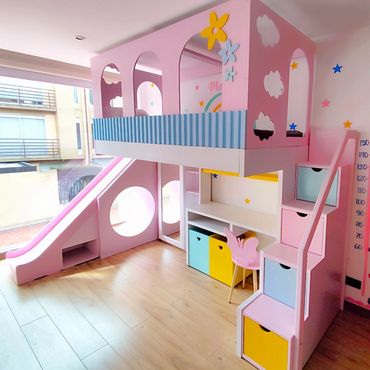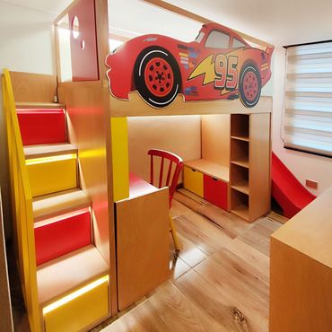 Un camarote funcional, con espacio de juegos, estudio y descanso, donde tendrá un crecimiento alegra y divertido acorde a su edad.